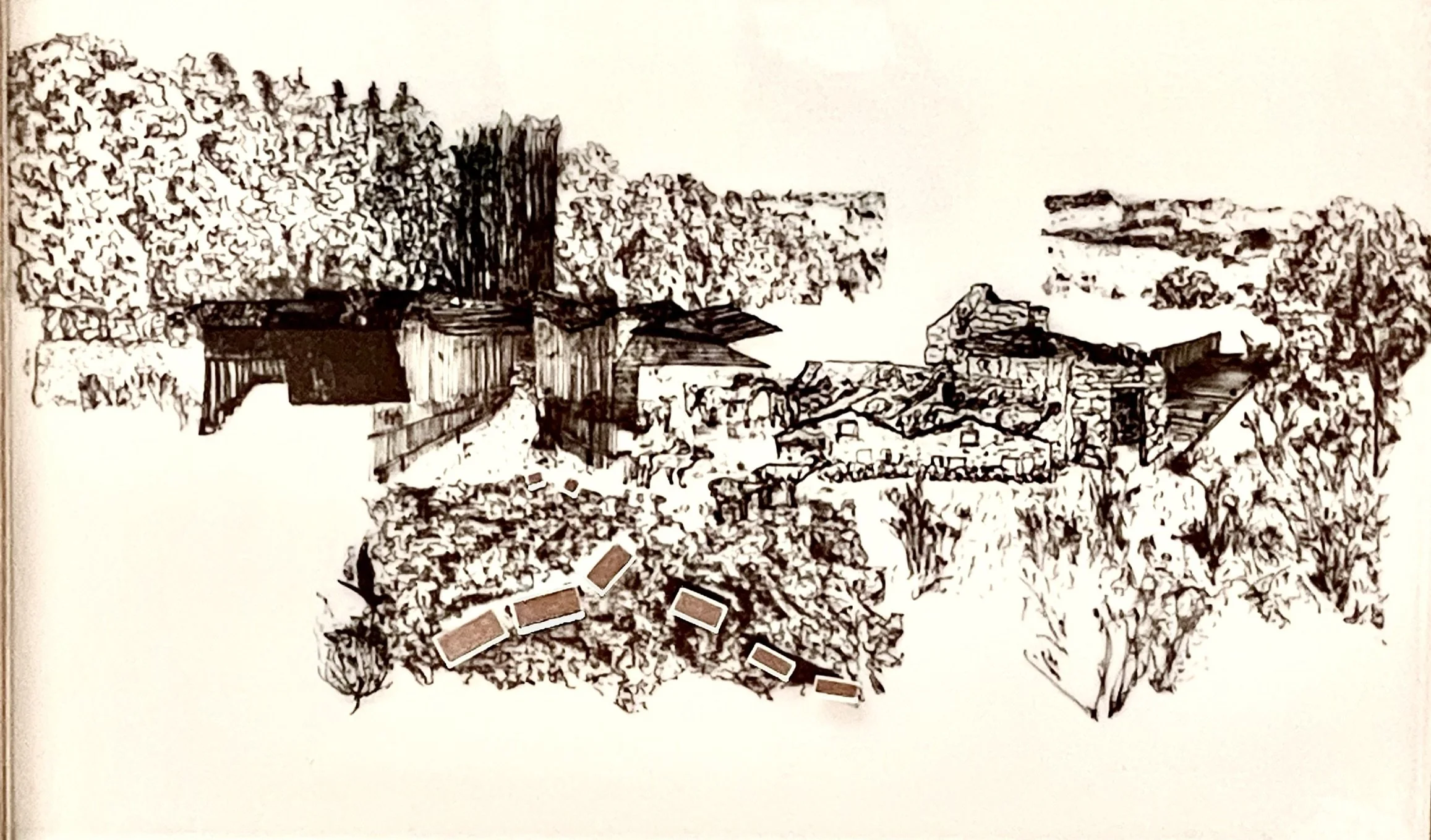 A series of overlaid sketches of the existing features of the site, exploring the oscillations between built form, heritage and the natural elements.